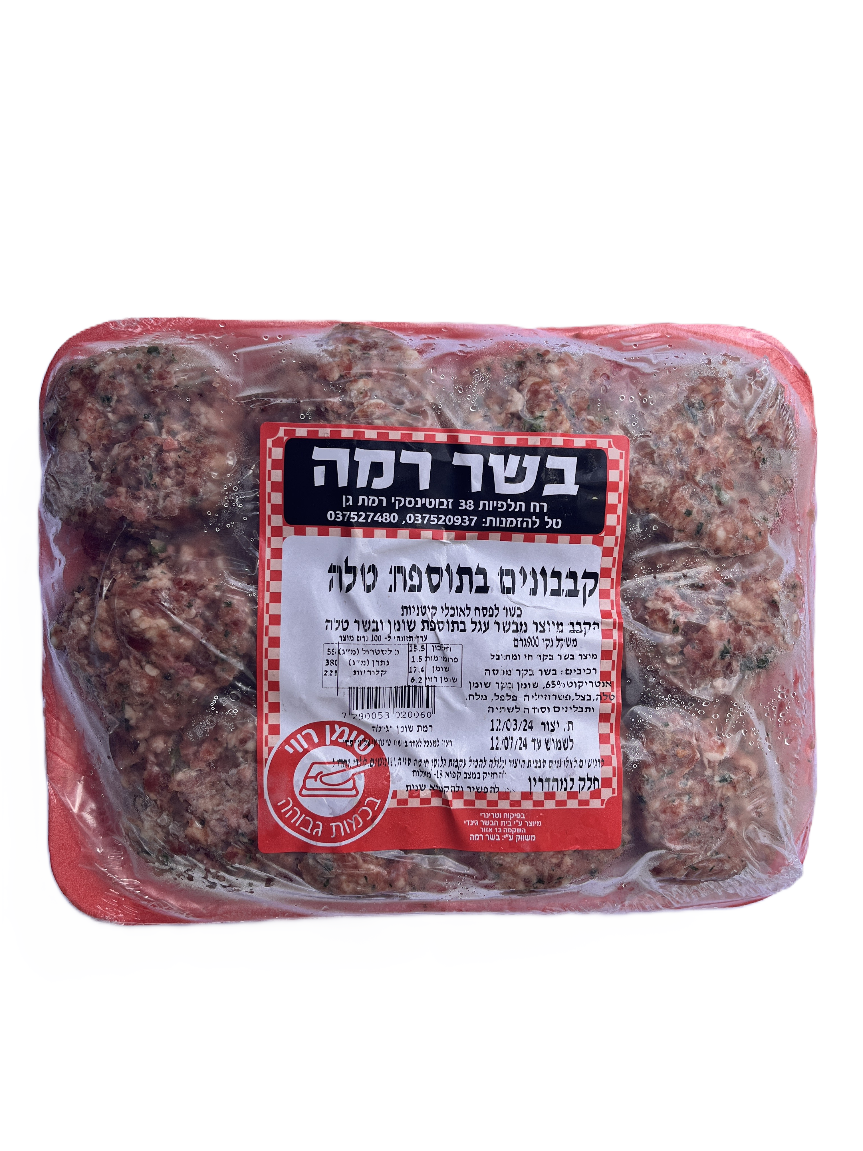 מגיע כ-900 גרם לחבילה של 24 קבבוני טלה.