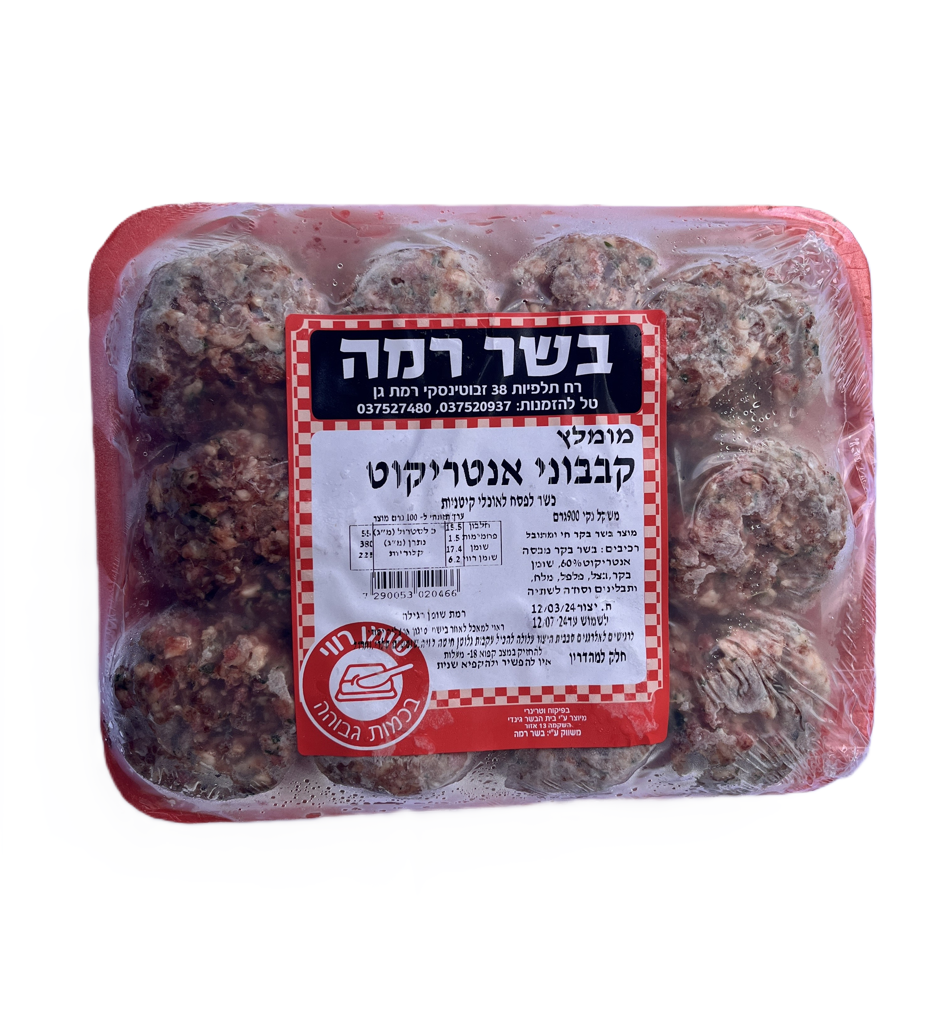 מגיע כ-900 גרם לחבילה של 24 קבבוני אנטריקוט.